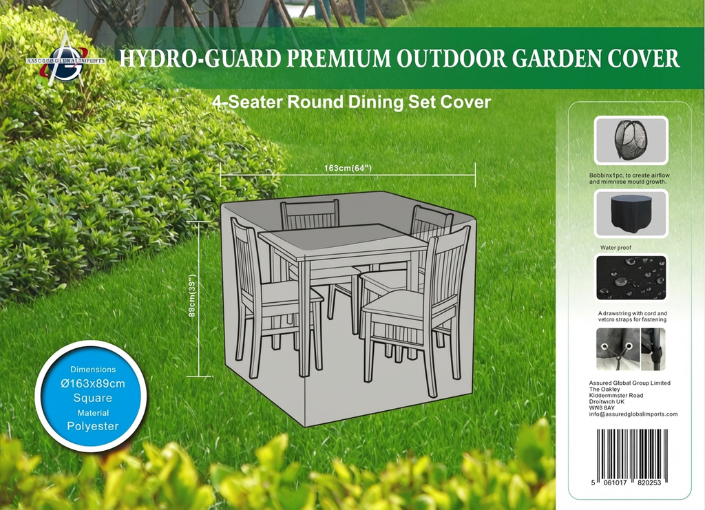 The cover features an all-round draw string bottom with cord locks that help to keep it firmly in place in case of harsh weather conditions. With a wipe-clean surface, the cover is low maintenance to promote an enduringly clean appearance. 2pc Bobbins included to create airflow and minimise mould growth