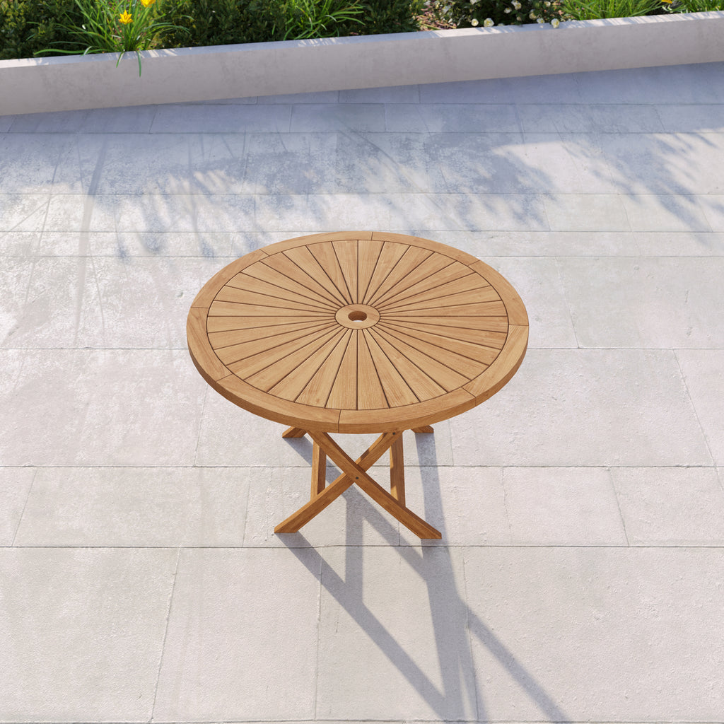 Whether hosting a summer gathering or enjoying a quiet meal in the garden, this teak folding dining table set provides both convenience and durability. Designed with flexibility in mind, the 120cm round Sunshine table comfortably seats six and can be folded away when not in use, making it ideal for patios, decking, or compact spaces.