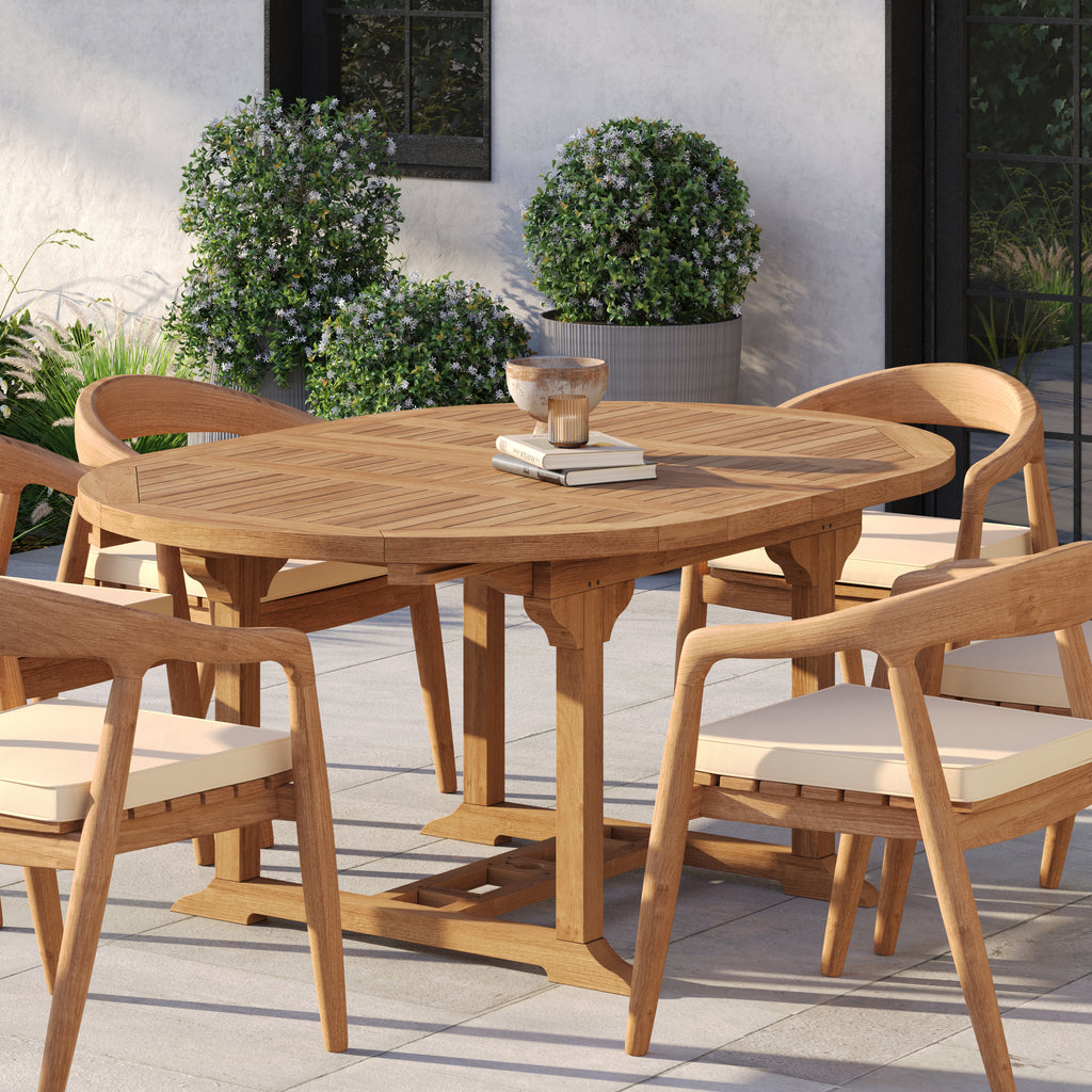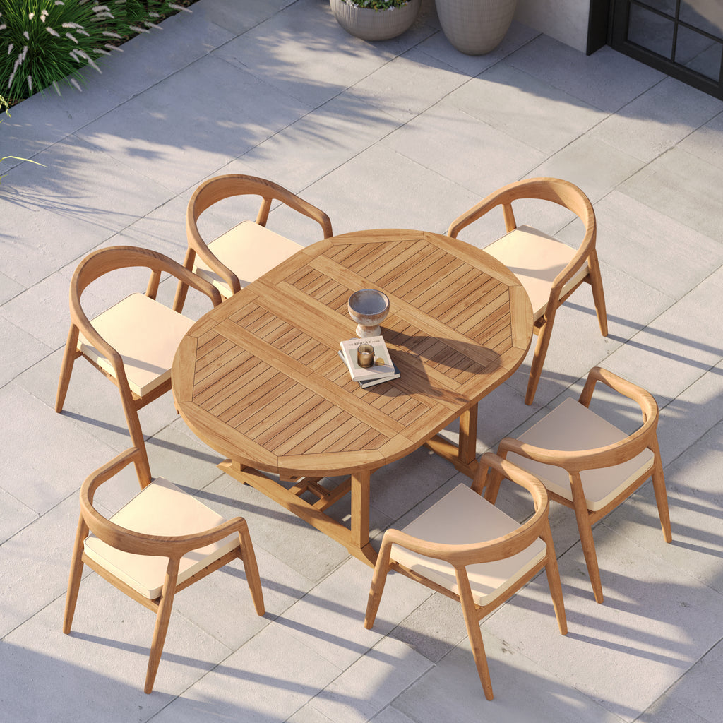 Round to Oval Extending Teak Table: Extends from 120 cm to 170 cm, offering flexibility for casual dining or entertaining guests.