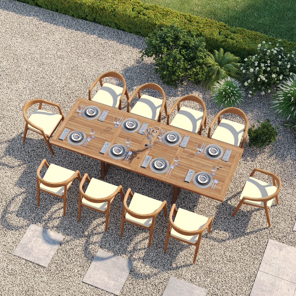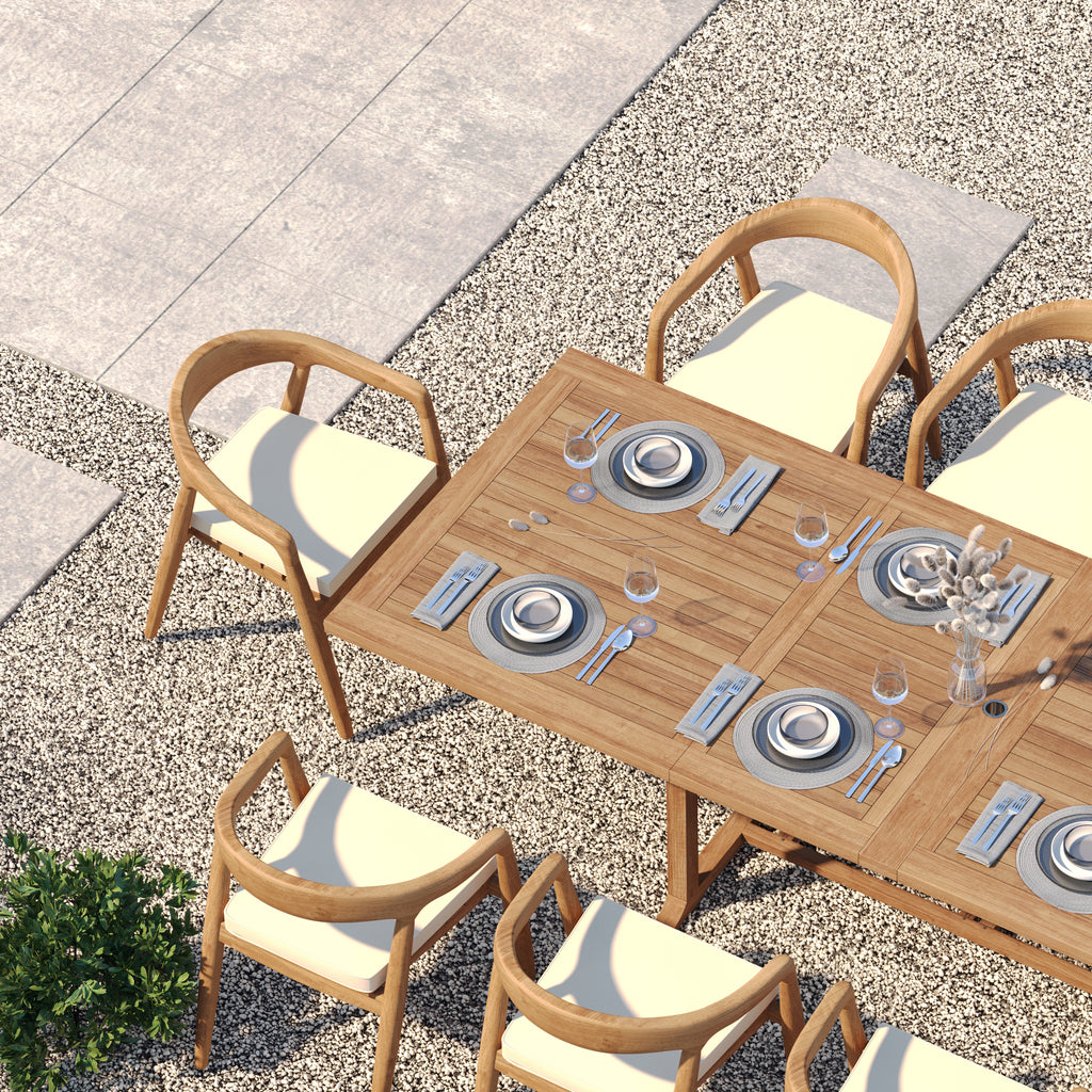 Premium Teak Dining Furniture: Warm, natural tones and distinctive grain for a stylish outdoor space.